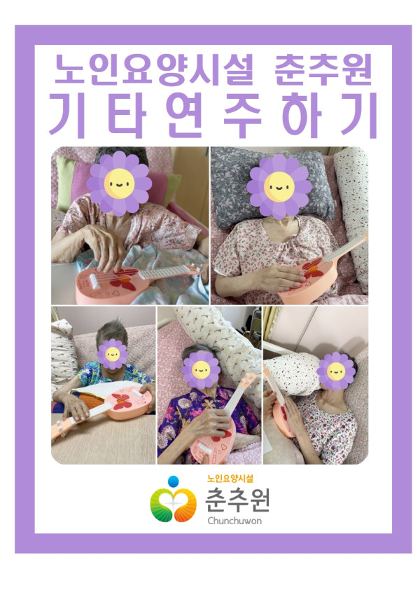2025.10.03.중증음악요법 작성자 사회복지사6 조회수 : 26회 작성일 25-10-04 본문 기타 선율에 맞춰 마음을 나누며 미소로 교감하는 따뜻한 시간이 되었습니다. 잔잔한 음악 속에서 어르신들께 평안과 행복이 스며드는 시간을 선물해드렸습니다. 목록 이전글2025.10.03 사회적응훈련 25.10.04 다음글2025.10.03 여가레크레이션 25.10.04
