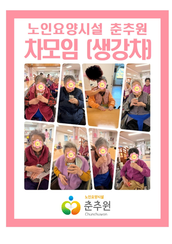 생강차 차모임은 따뜻한 차를 매개로 정서적 안정과 사회적 상호작용을 촉진한 여가 프로그램이었음. 생강의 향과 온기가 오감을 자극하여 참여 의욕을 높였으며, 계절감 있는 주제로 대화가 자연스럽게 이어짐. 소그룹 환경에서 반복 안내와 정서적 지지를 제공하여 참여 만족도가 높았고, 전반적으로 편안한 분위기 속에서 휴식과 교류의 시간 이었습니다.
