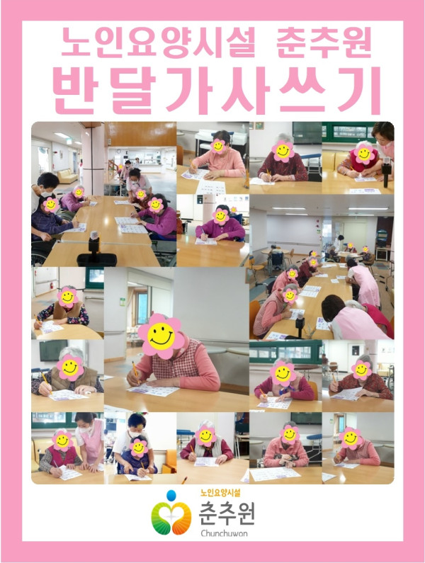 2023.11.02 한글교실 작성자 사회복지사1 조회수 : 3,507회 작성일 23-11-02 본문 반달 가사를 함께 읽어보고 가사를 써 본 후 반달 노래를 불러보는 시간을 가졌습니다. 목록 이전글2023.11.02 인지재활요법 23.11.02 다음글2023.11.01 아웃팅1 23.11.01