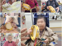 실로폰 연주 시범을 보시고 음악을 감상하며 어르신께서 연주 해보는 즐거..