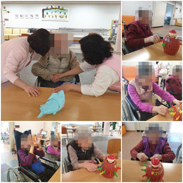 2022.02.17 치료레크레이션 작성자 사회복지사2 조회수 : 7,433회 작성일 22-02-17 본문 어르신들과 룰렛 게임을 하면서 함께 박수를 치며 노래를 부르면서 많이 즐거워하셨습니다. 목록 이전글2022.02.11 중증음악요법 22.02.18 다음글2022.02.17 춘추노래자랑 22.02.17
