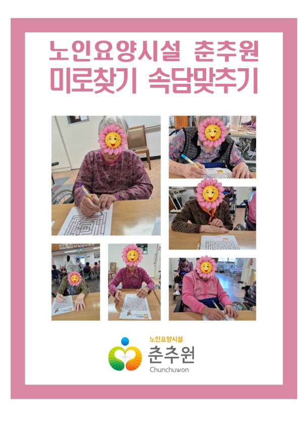 대파박수를 신나게 치고 어르신들과 미로찾기와 옛날 속담을 회상하며 떠올려 보는 즐거운 시간을 가졌습니다.