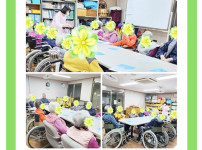 어르신들과 신나는 노래에 마춰 컵을 치며 컵탑도 쌓으며 즐거운 시간을 보..