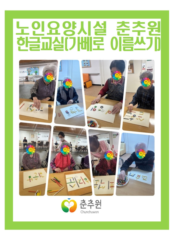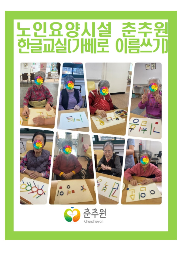 가베를 활용한 이름 표현하기 활동은 어르신의 소근육 기능과 시·지각 능력을 자극하고, 자신의 이름을 직접 구성해보는 과정을 통해 성취감과 자존감을 높이는 데 긍정적인 영향을 보였으며. 활동에 참여하는 동안 어르신들은 가베를 하나씩 맞추며 집중하는 모습을 보였고, 완성 후에는 서로의 작품을 보며 자연스럽게 상호작용이 이루어지는 등 사회적 교류 또한 활발하게 나타났습니다.