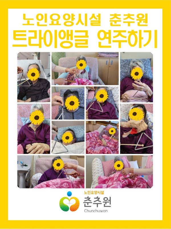 2023.12.22 중증음악요법 작성자 사회복지사5 조회수 : 3,221회 작성일 23-12-22 본문 크리스 마스를 맞이 하여 캐롤에 맞춰 트라이앵글로 연주 해 보는 시간을 가져 보았습니다. 목록 이전글2023.12.25 치료레크레이션 23.12.25 다음글2023.12.22 사회적응훈련 23.12.22