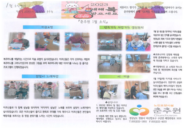 2023년 01월 소식지 작성자 사회복지사3 조회수 : 2,785회 작성일 23-02-17 본문 목록 이전글2023년 02월 소식지 23.03.15 다음글2022년 12월 소식지 23.01.12